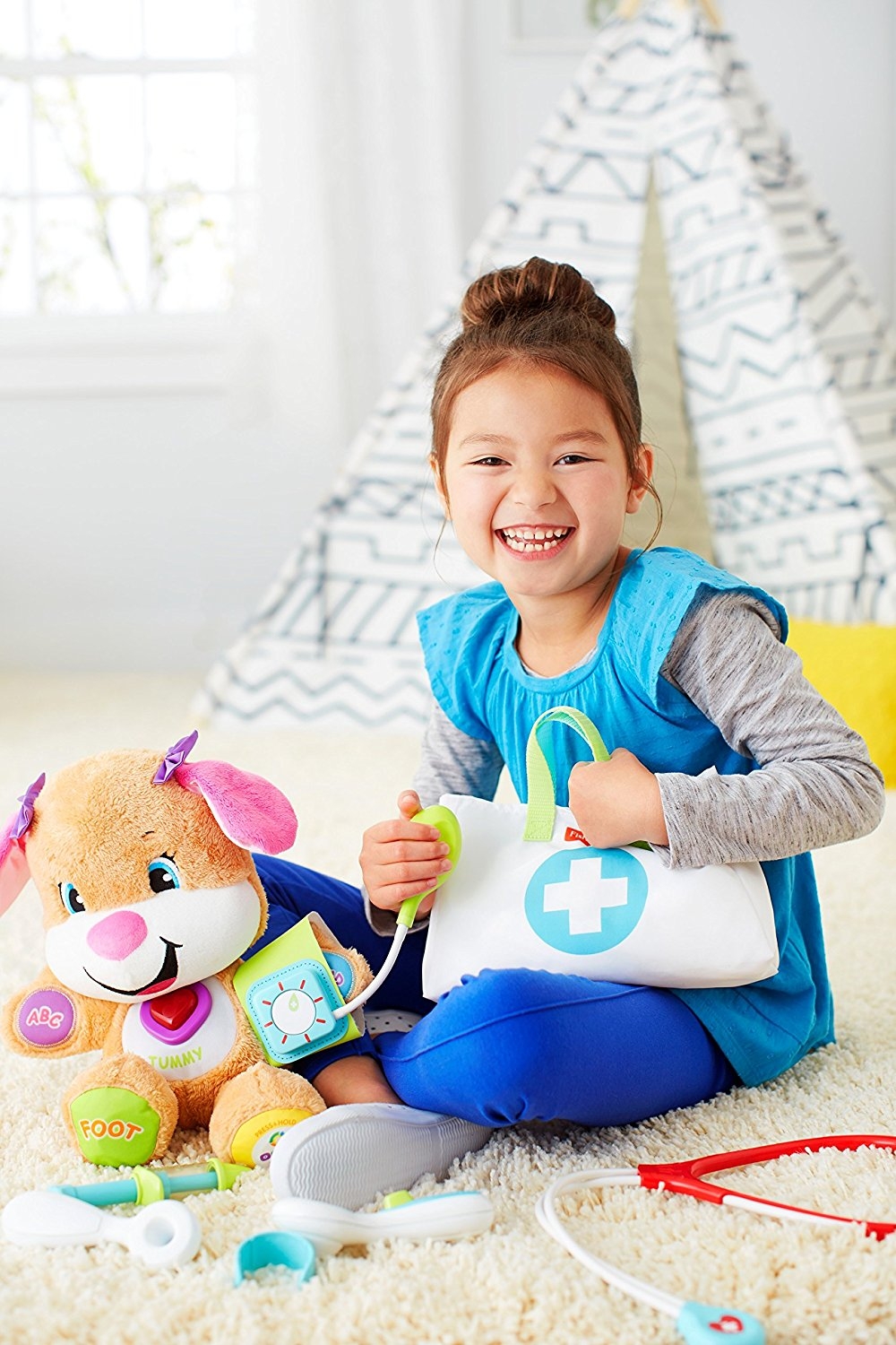 С набором «Маленький доктор» от Fisher-Price® дошкольники могут надеть белые халаты и участвовать в увлекательных ролевых играх.