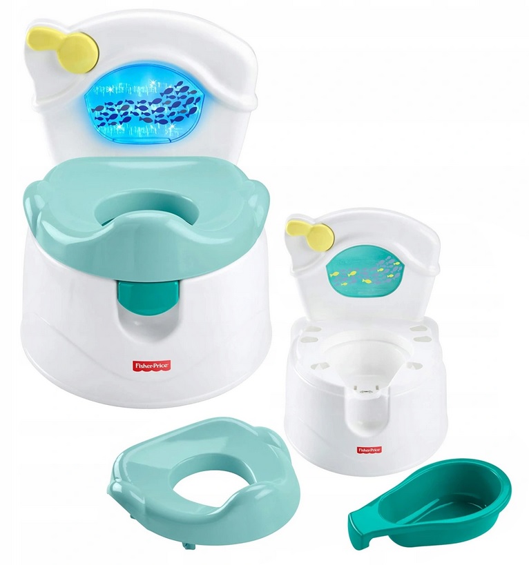 Горшок для рыбы Fisher-Price® поможет вам и вашему малышу, когда придет время попрощаться с подгузниками. Каждое успешное использование горшка вознаграждается веселыми огнями и звуками, когда ребенок нажимает кнопку смыва. Горшок легко чистится и имеет съемную приучительную крышку, благодаря которой вашему ребенку будет легче пользоваться настоящим туалетом.