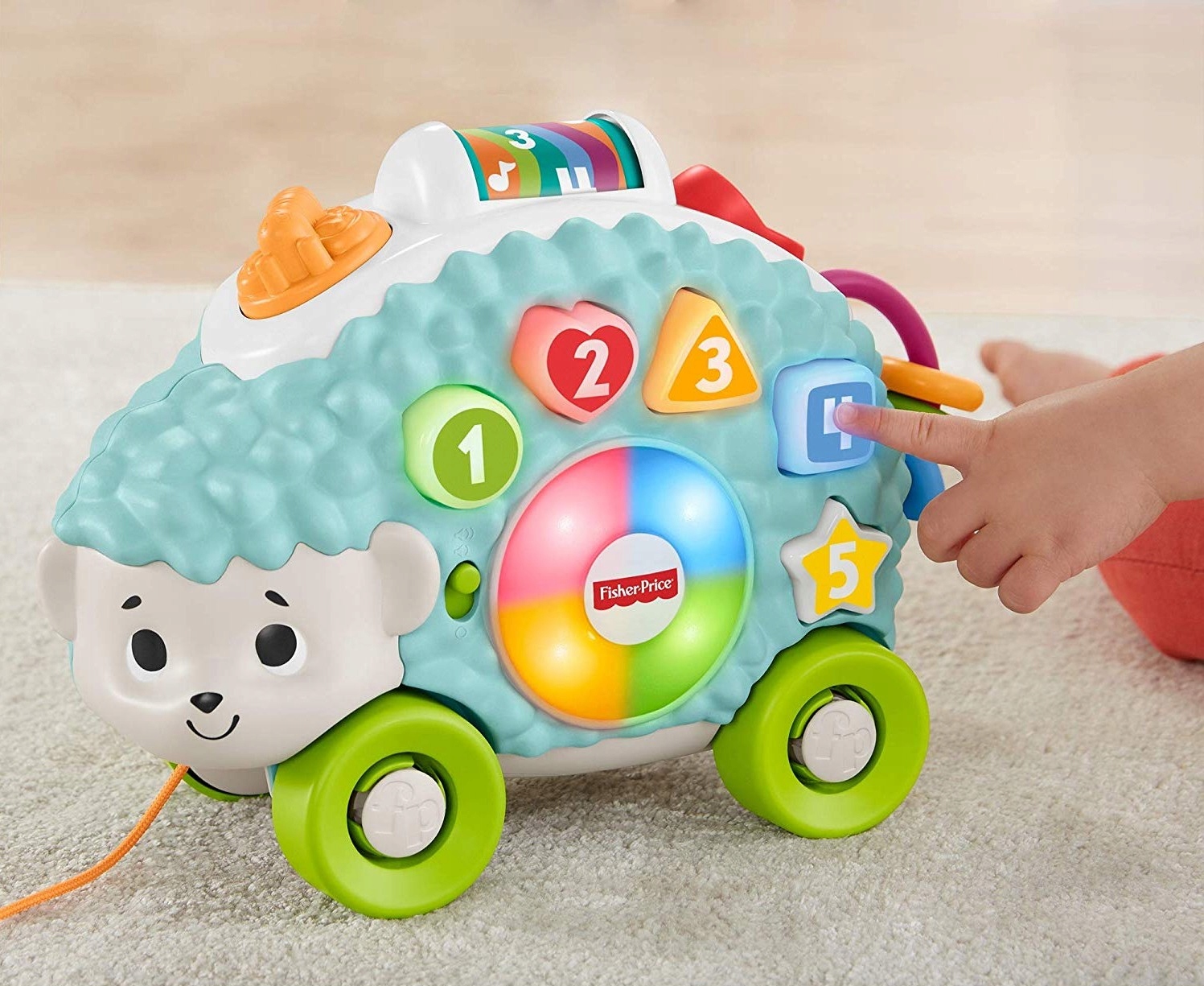 Дети постарше могут тянуть и толкать ежик для еще большей активации веселой музыки и звуков.