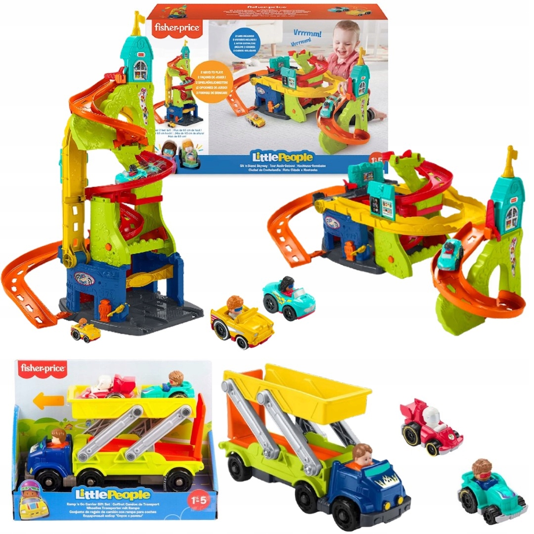 Горка Fisher-Price Little People Track Garage 2 в 1 HBD77 — это фантастический набор, который можно трансформировать двумя способами. Комплекс можно построить в виде стоячей башни с гусеницей высотой 86 см, по которой автомобили мчатся в поворотах, словно горные серпантины. Тогда одной кнопкой мы сможем превратить башню в гараж с автомойкой, горкой и магазином.