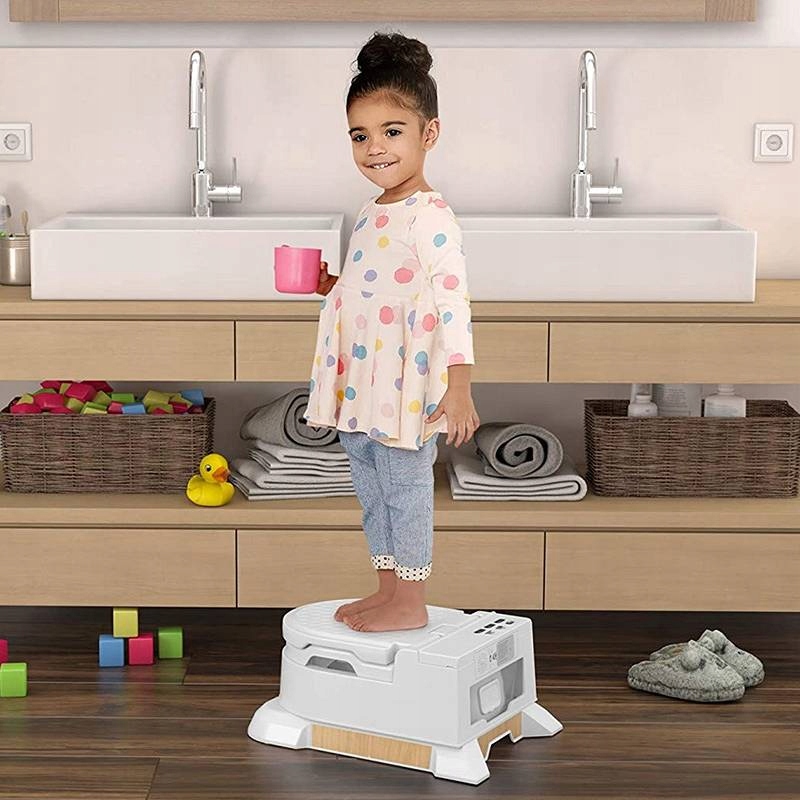 Когда ребенок подрастет, горшок Fisher Price Home Decor 4в1 станет стулом, на котором малыш сможет встать, чтобы дотянуться до раковины или полки.