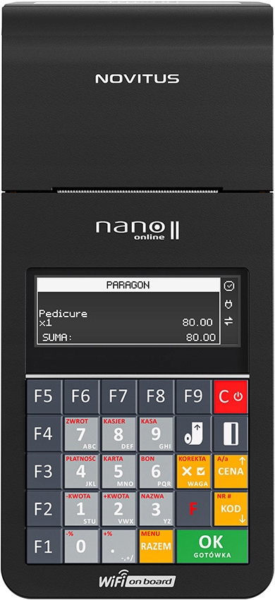 - Обучение. Идеальное решение как в мобильных продажах, так и в традиционной продаже. Модель сохранила лучшие особенности оригинала, то есть небольшой размер и эргономичная форма, водонепроницаемой клавиатуры с подсветкой. Тем не менее, новый дизайн и дополнительные функциональные клавиши являются более быстрой и удобной работой и более интуитивной работой. Автобусы, аренда, офисы врача, парковки, салоны красоты, магазины - кассовый аппарат Nano II всегда будет адаптироваться к бизнесу. Онлайн -фонд Nano II имеет поддержку WiFi в стандартном - после удаления из коробки он может немедленно подключиться к любой сети, в которой находится диапазон.