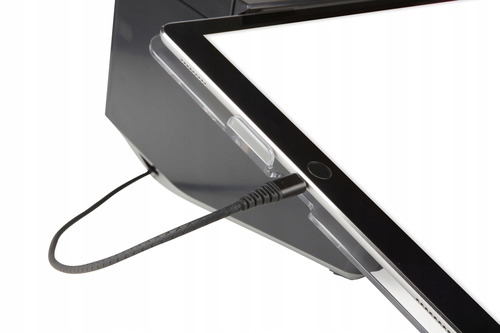 Низкий профиль и скользящий зажим позволяют прикрепить практически любой планшет. Все можно крепить как горизонтально, так и вертикально, что экономит много места... Также есть возможность закрепить на стене.