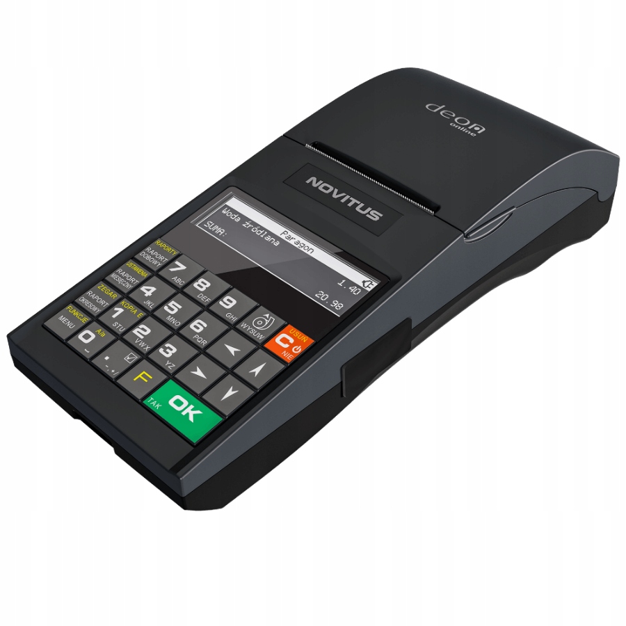 Это один из самых эргономичных фискальных принтеров в предложении NOVITUS, который также поддерживает связь с Центральным кассовым хранилищем (ЦРК) в соответствии с требованиями Постановления министра предпринимательства и технологий. от 28 мая 2018 года о критериях и технических условиях, которым должны соответствовать устройства фискального учета. Копия распечатки для пользователя хранится в защищенной памяти устройства, а доступ к ней осуществляется через специальное приложение. Как и любой фискальный принтер Novitus, Deon Online также имеет возможность печатать счета-фактуры с НДС на своем печатающем механизме. Помимо данных Покупателя, онлайн-принтеры также могут распечатать на форме счета-фактуры данные получателя счета-фактуры с НДС. Они также могут распечатать любые нефискальные распечатки, содержащие текст, графику, штрих-коды и QR-коды.