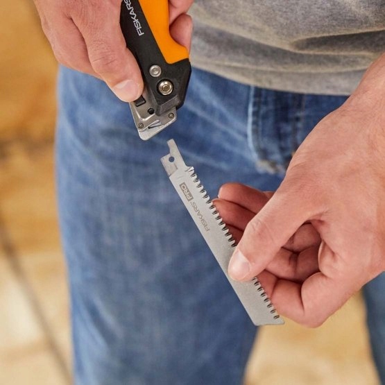 - Компактная складная пила Fiskars разработан, чтобы облегчить сложную работу, может удобно храниться на панели инструментов