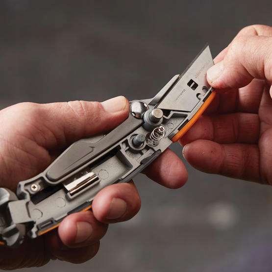 - Нож имеет уникальную складную защиту лезвия для максимальной безопасности лезвия.