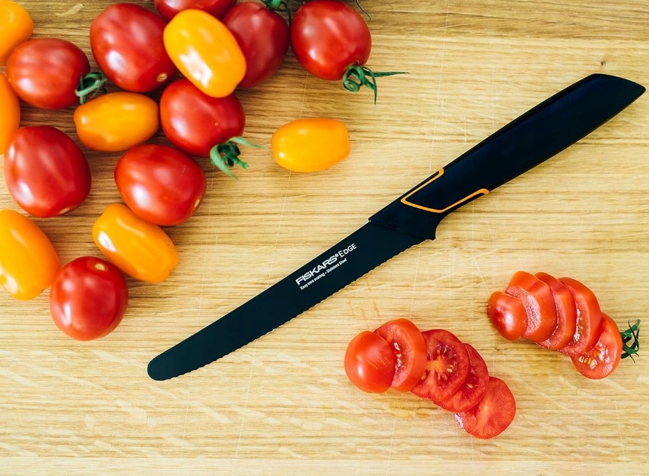 - Оригинальный дизайн - элегантный черный с апельсиновыми акцентами, характерными для фискаров, определенно оживит внутреннюю кухню