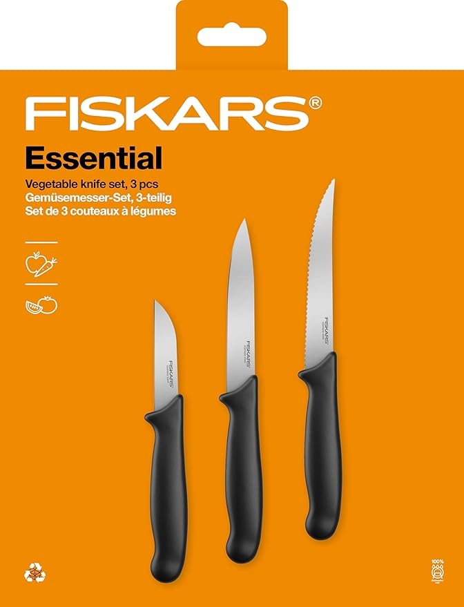 Fiskars Essential KPL 8 ножей (кухня +для овощей +для пилинга) в коробке