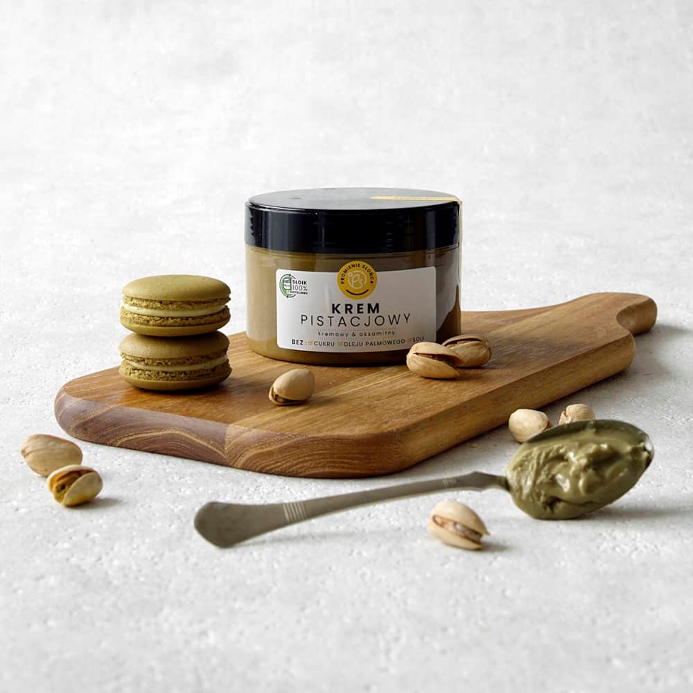 Крем изготовлен путем измельчения фисташек без каких-либо искусственных консервантов и красителей. Благодаря этому крем не только сохраняет свои полезные свойства, но и вкус и аромат фисташек.