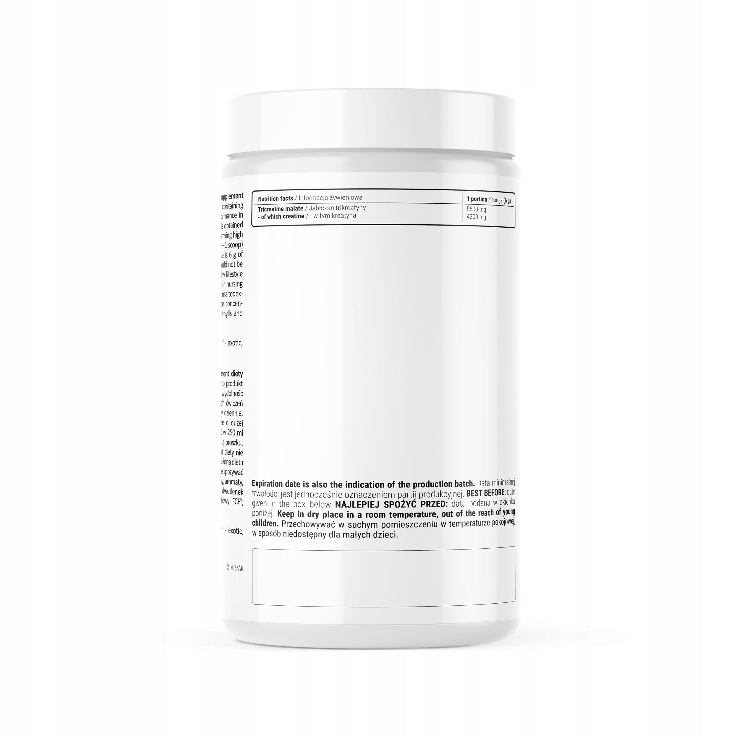 fitmax tricreatine malate (порошок) содержит подсластитель, это продукт, содержащий креатин в форме яблока трикриатина. Креатин повышает физическую производительность в случае последовательных коротких, очень интенсивных физических упражнений. Полезный эффект возникает при потреблении 3 г креатина в день. Продукт предназначен для взрослых, выполняющих физические упражнения с высокой интенсивностью.