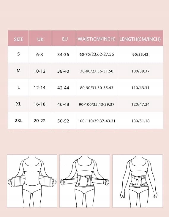 - Тренировочный пояс: изготовлен из удобной, регулируемой и эластичной полиэфирной ткани, гибкой и прочной, что означает, что он легко чистится, адаптируется к телу и не раздражает кожу. Двойная регулируемая застежка-липучка обеспечивает точную посадку, сетка на спине обеспечивает воздухопроницаемость. Идеально подходит в качестве послеродового брюшного корсета.