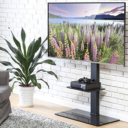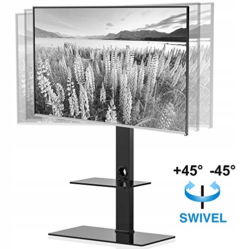 Напольная подставка для телевизора FITUEYES с основанием из закаленного стекла и поворотным кронштейном для больших 50-85-дюймовых ЖК-/LED-телевизоров. Регулируемая полка. Высокие угловые подставки для телевизора для спальни и гостиной. Вместимость до 110 фунтов. Черный.