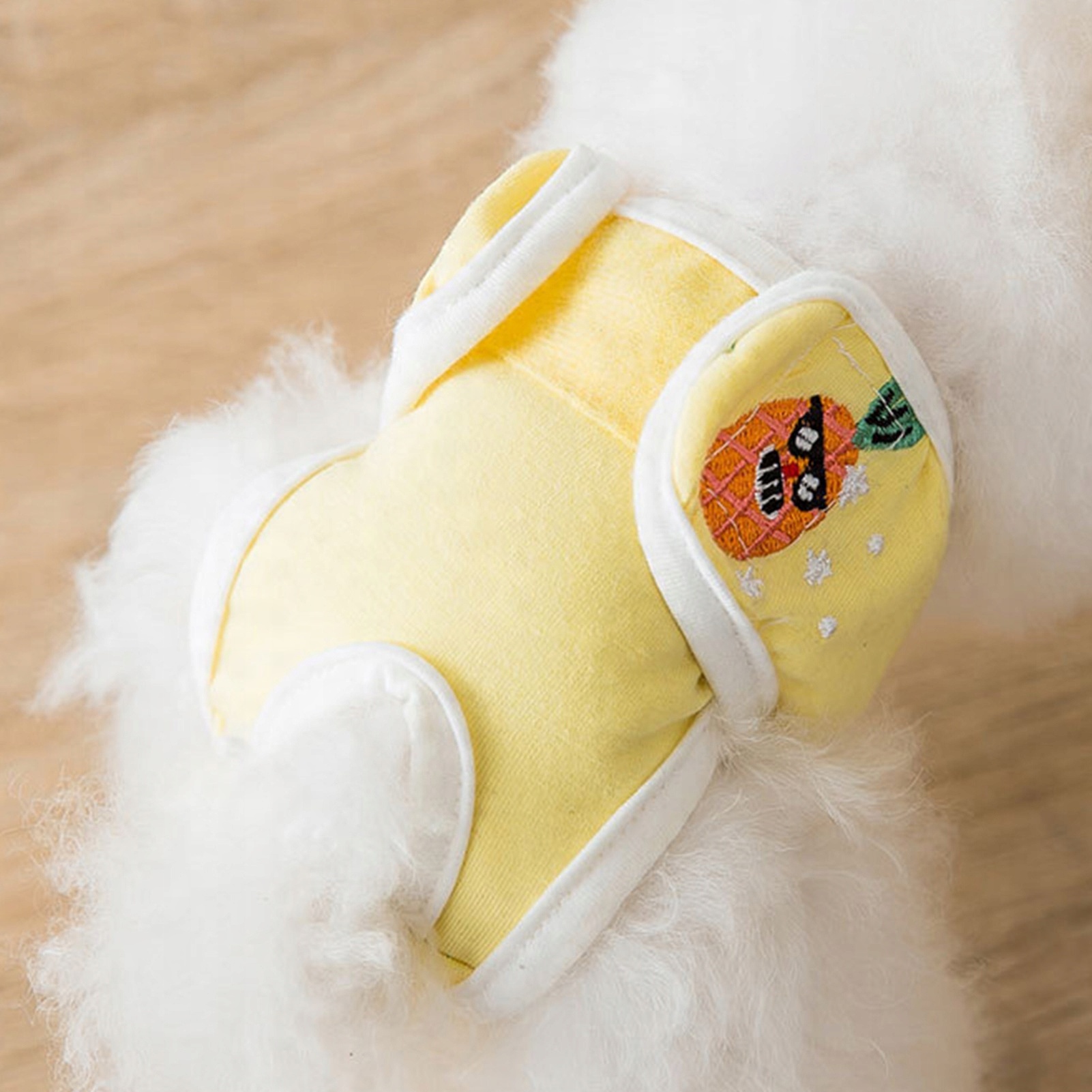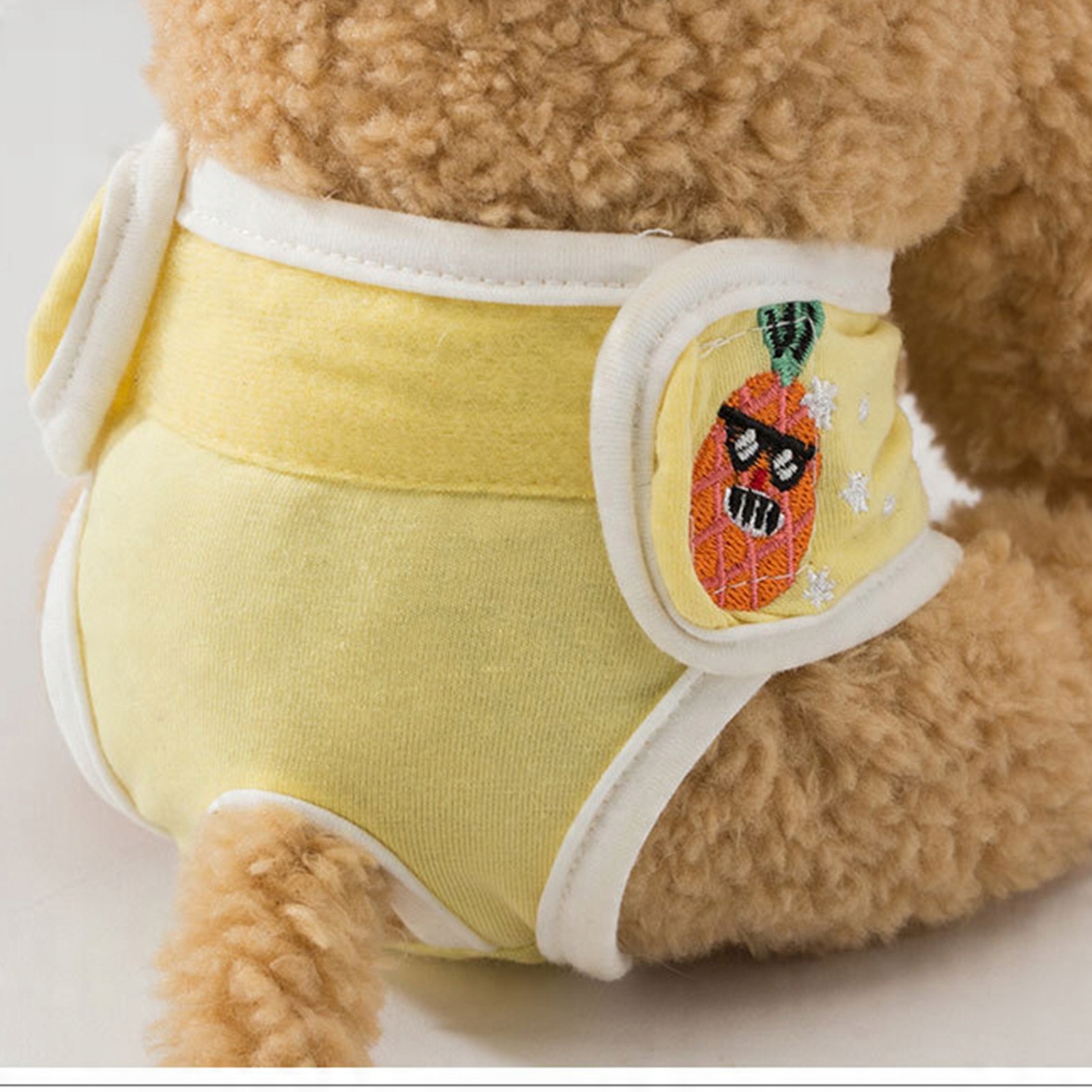 Физиологические штаны для собак. Удобная надежная защита, уменьшает смущение. Многоразовое физиологическое санитарно-гигиеническое белье для щенков с рисунком ананаса M