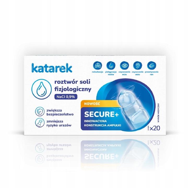 Вы также можете использовать его для разбавления ингаляционных препаратов. Физиологический раствор Katarek Secure+ также подходит для различных уходовых процедур, в том числе: для промывания ран, глаз, гигиены носа.