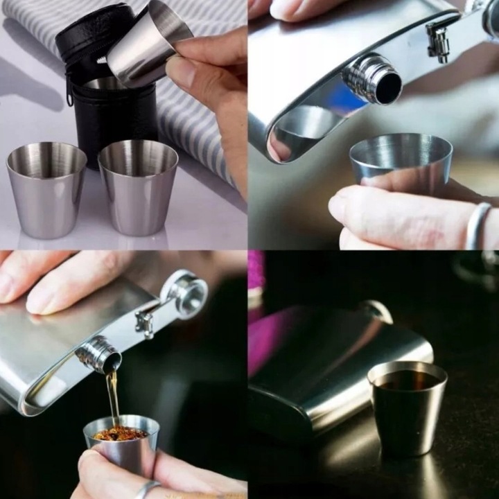 ФЛАГА ТУРИСТИЧНА, МЕТАЛОВЕ СРІБЛО, НЕРЖАВІЮЧА СТАЛЬ, 240 мл + 4 склянки