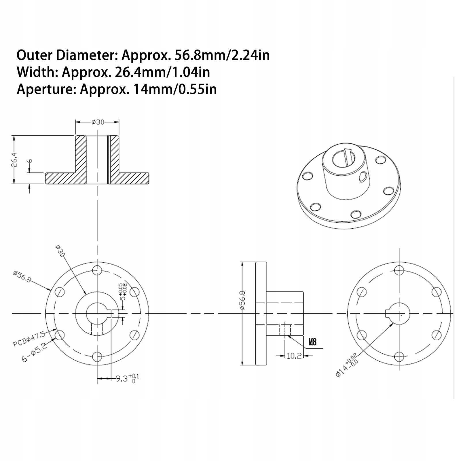 Наружный диаметр: прибл. . 56,8 мм/2,24 дюйма Ширина: около 26,4 мм/1,04 дюйма