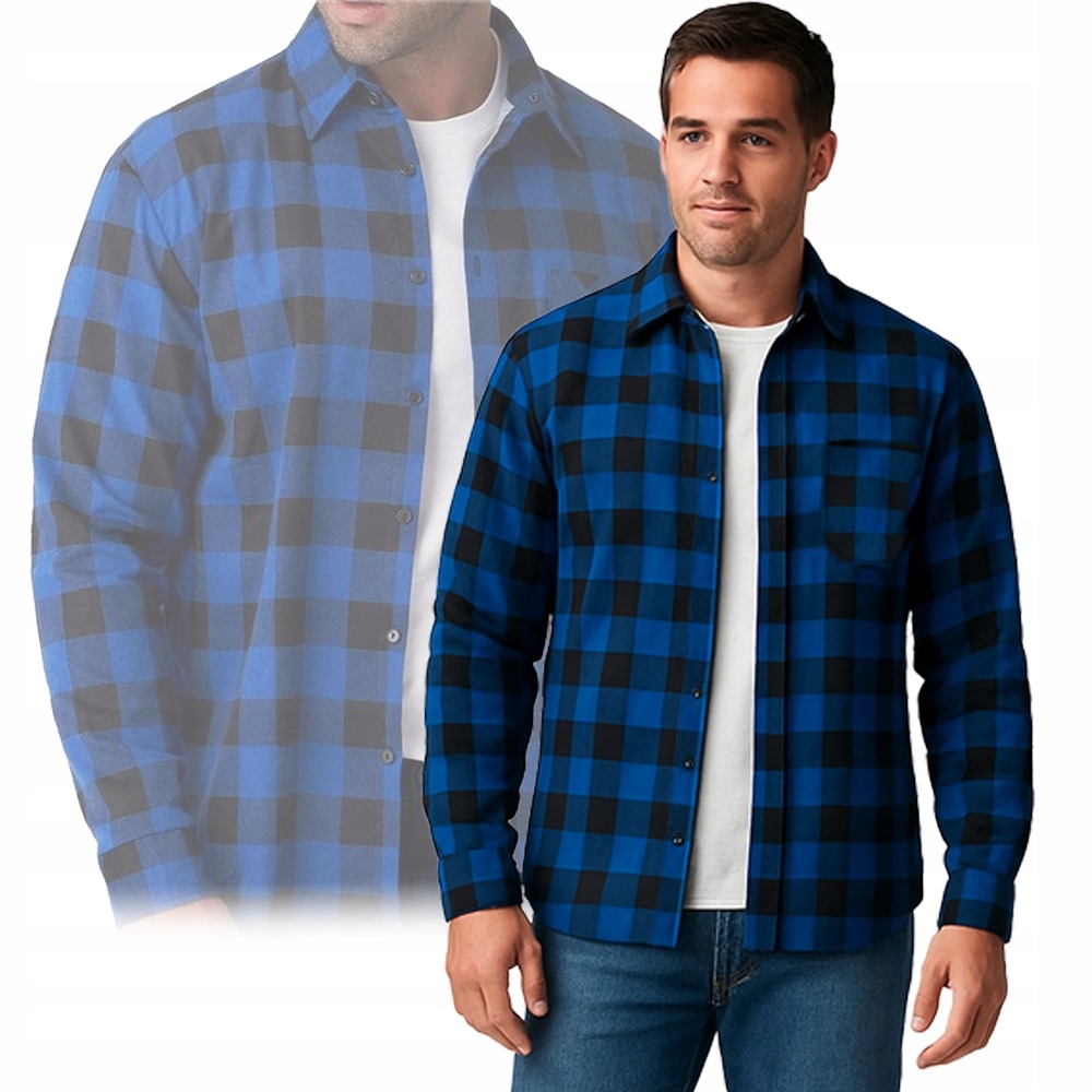 Фланелевая клетчатая рабочая рубашка - синяя - ПОЛЬСКИЙ ПРОДУКТ