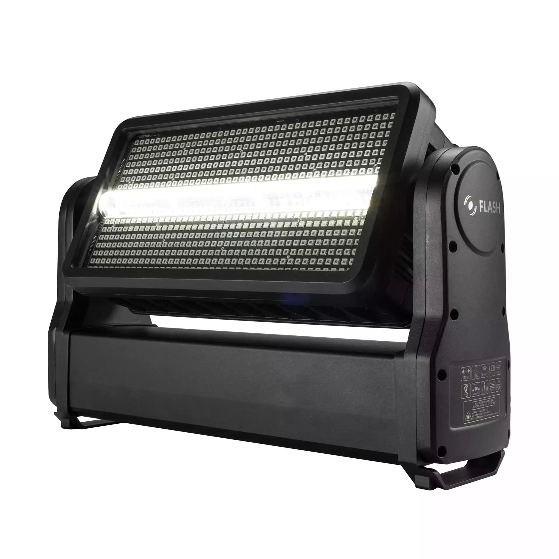 strobefx 1000 IP65 оснащен двумя источниками света и наклоном: 185⁰: 12 сечений RGB (588 светодиодный диод RGB 5050), 12 белых лучей (144 шт. Благодаря классу водостойкости IP65 и активному охлаждению, он отлично работает во внешних условиях.