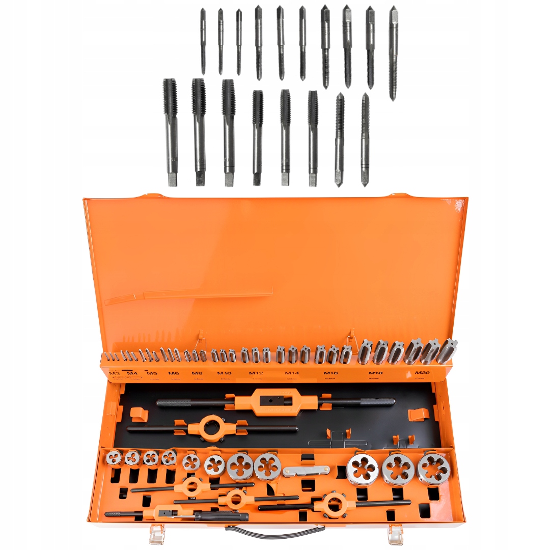 ➡️ Набор метчиков и плашек, состоящий из 54 элементов, включая метчики, плашки, ручки для метчиков, держатели плашек, метчик и отвертку. p >