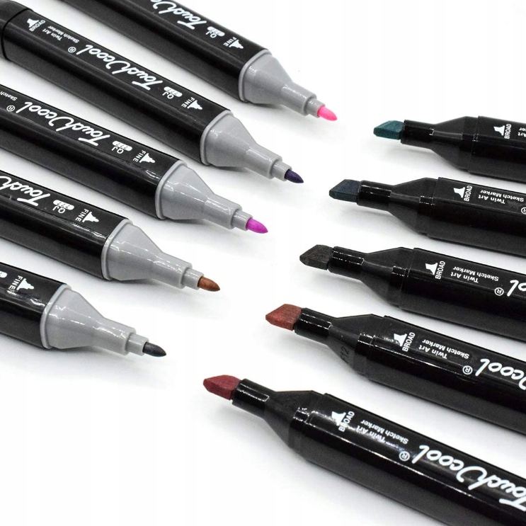 Маркеры заполнены спиртовыми чернилами с отличной пигментацией. Цвета чрезвычайно насыщенные и непрозрачные, чернила не растекаются. пролиться или исчезнуть. Кроме того, цвета можно смешивать друг с другом, создавая удивительные переходы, тени и сочетания. Чернила не просачиваются сквозь бумагу, поэтому их можно легко наносить слоями.