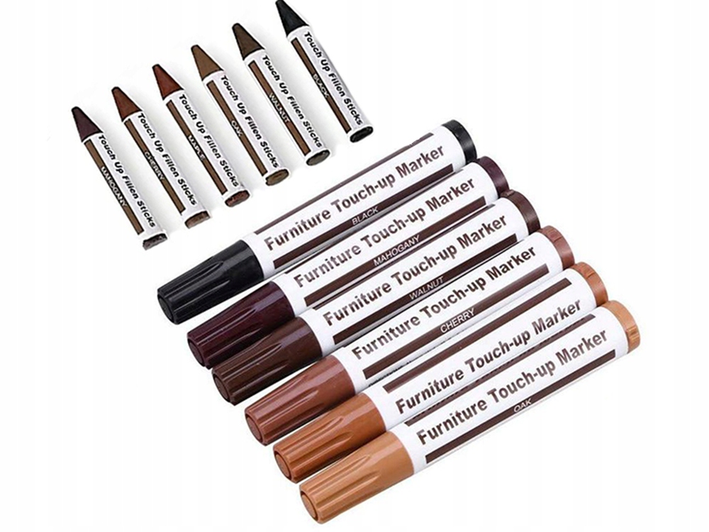 3️⃣ Эффективное закрашивание дефектов: Маркеры и восковые мелки прекрасно закрашивают различные виды мелких дефектов на поверхности мебели, например, царапины, царапины или потертости.