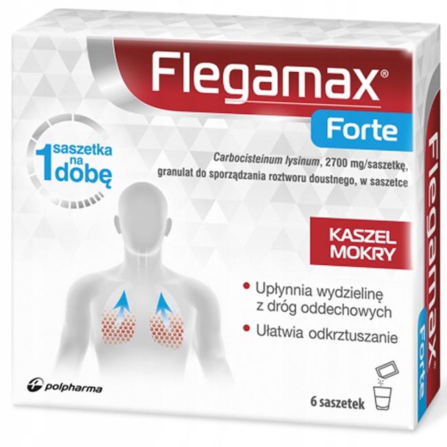 Флегамакс Форте содержит активное вещество карбоцистеин, которое влияет на состав бронхиального секрета. Карбоцистеин делает выделения более жидкими. Это облегчает ресничкам (мелкие волоски, выстилающие дыхательные пути) транспортировку бронхиального секрета и удаление его из дыхательных путей при кашле.