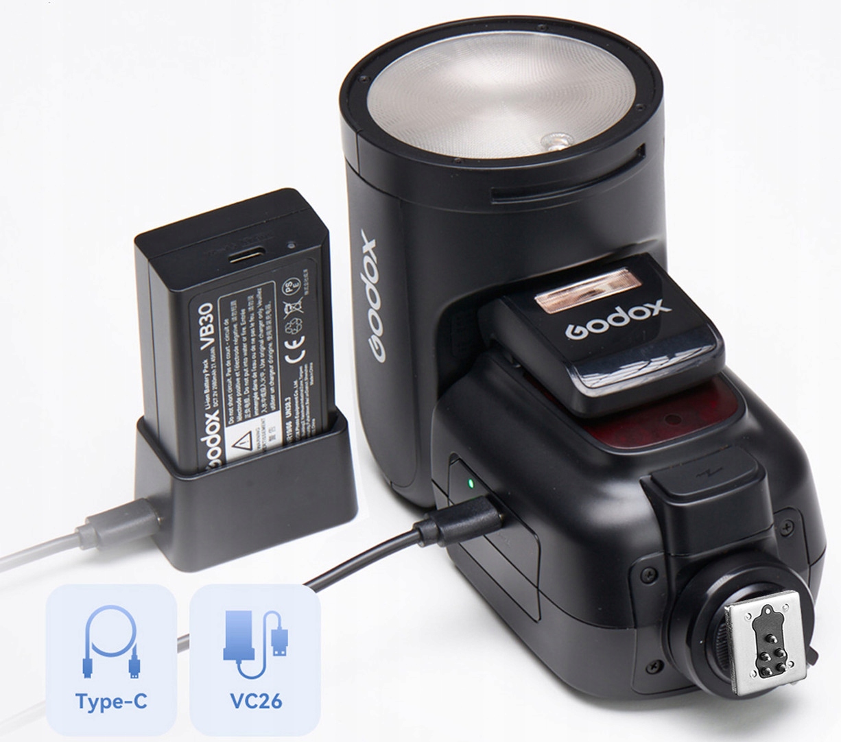 【Удобство зарядки】 Легко заряжайте, выбрав зарядное устройство типа C. или оригинальное зарядное устройство VC26. Наслаждайтесь фотографией на ходу без ущерба для производительности и окружающей среды.