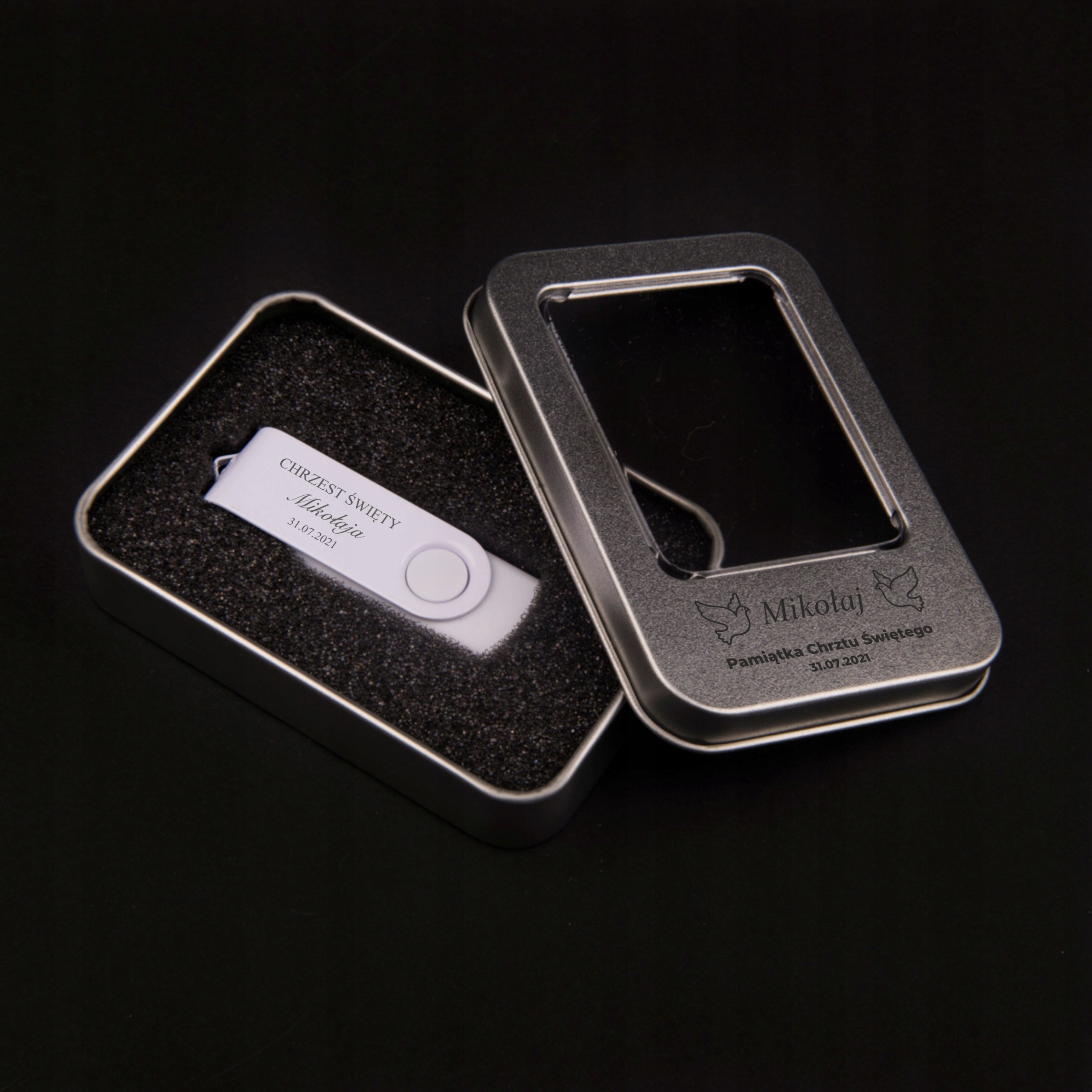 Флешка Twister емкостью 32 ГБ, USB 2.0 + металлическая коробка + гравировка Крещения