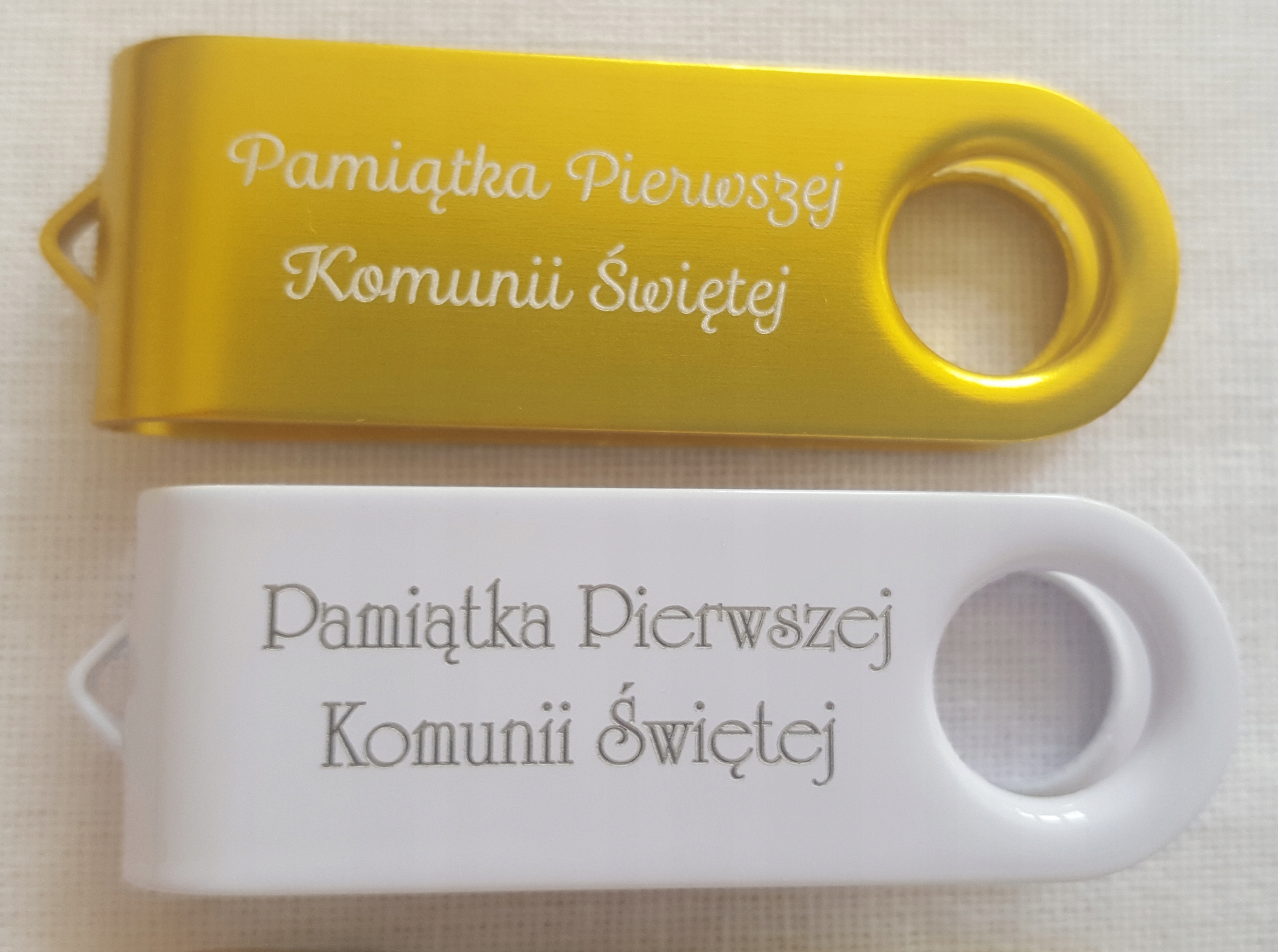 - флешка с яркой гравировкой на белой пластине