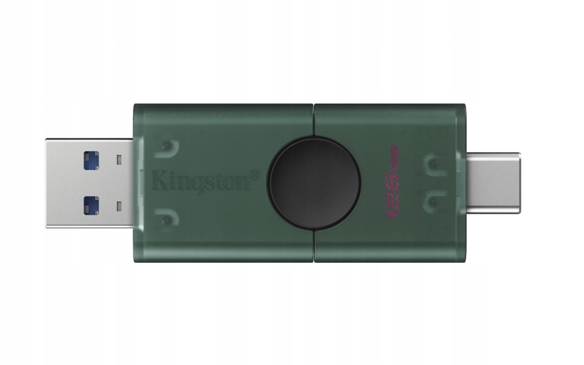 - Kingston DataTraveler Duo оснащен двумя разъемами USB, которые позволяют подключаться к портам USB Type-A и USB Type-C.