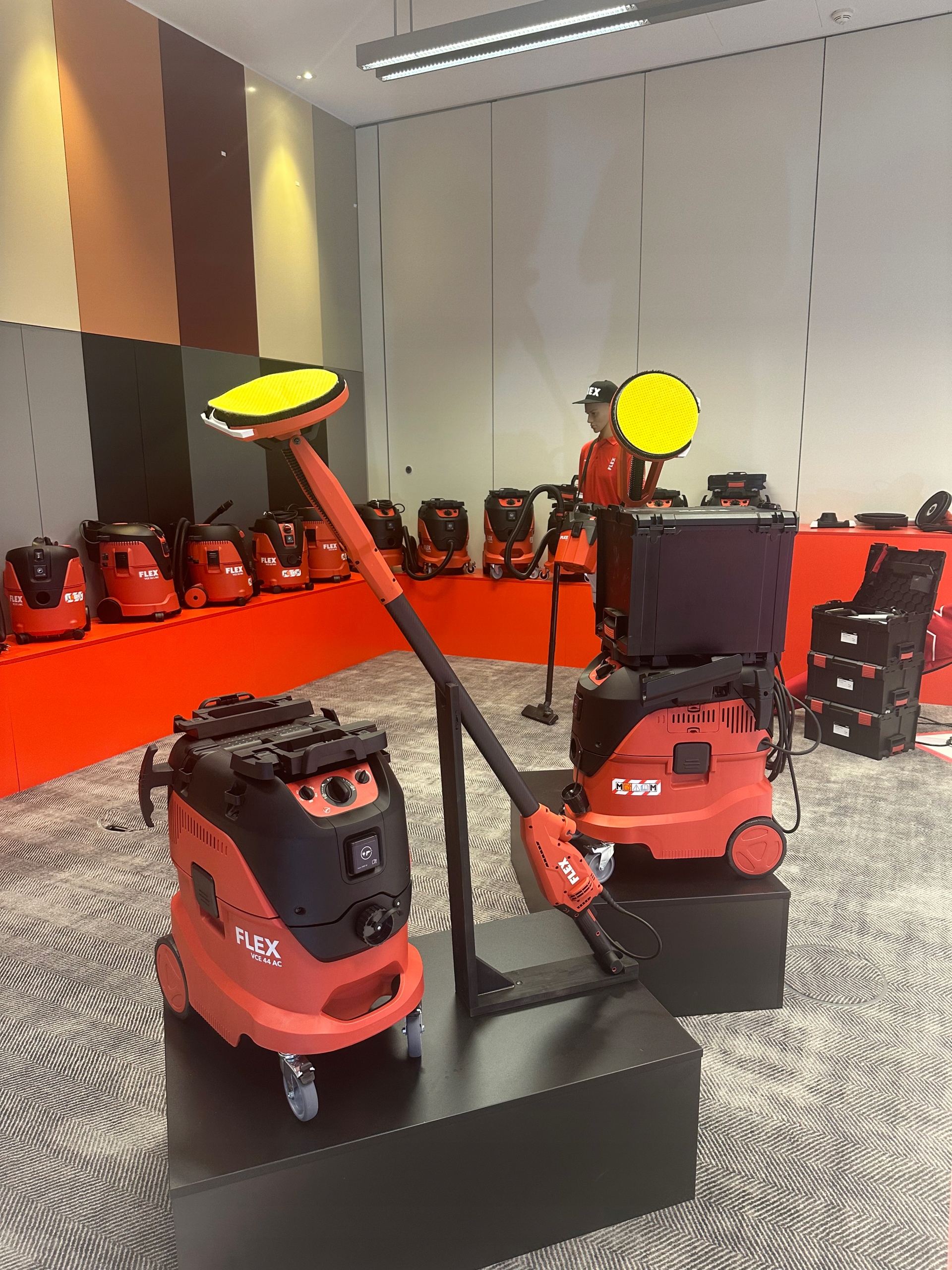 - ОПЦИОНАЛЬНОЕ удлинитель. Благодаря удлинителю с защелкой теперь вы можете безопасно и удобно шлифовать внутренние поверхности высотой до 3,20 м с помощью новой шлифовальной машины FLEX Giraffe®.