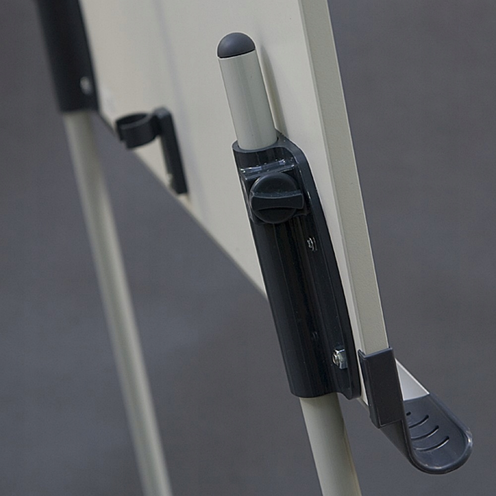 Окрашенная доска для сухого стирания с магнитными свойствами. Используется для подвешивания сменных блоков различного формата. Идеально подходит в качестве базового оборудования для учебных залов, конференц-залов и офисов. Серый цвет с элегантными графитовыми элементами. Прочные пружинные ручки для подвешивания блоков. Основание на трех ножках, регулируется по высоте до 186 см. Оснащен удобной полкой для маркеров. Размеры: 600 х 900 мм