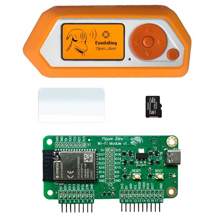 Производитель Flipper Zero не предоставляет в комплект поставки карту Micro SD, необходимую для его работы, а также чехол или пленку для экрана , который может быстро поцарапаться, поэтому в комплект также входит: