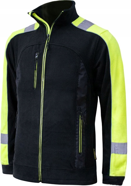 Толстовка-клеш с желтыми флуоресцентными элементами и светоотражающими полосами, изготовлена из 100% полиэстера. Плотность флиса 300 г/м2.