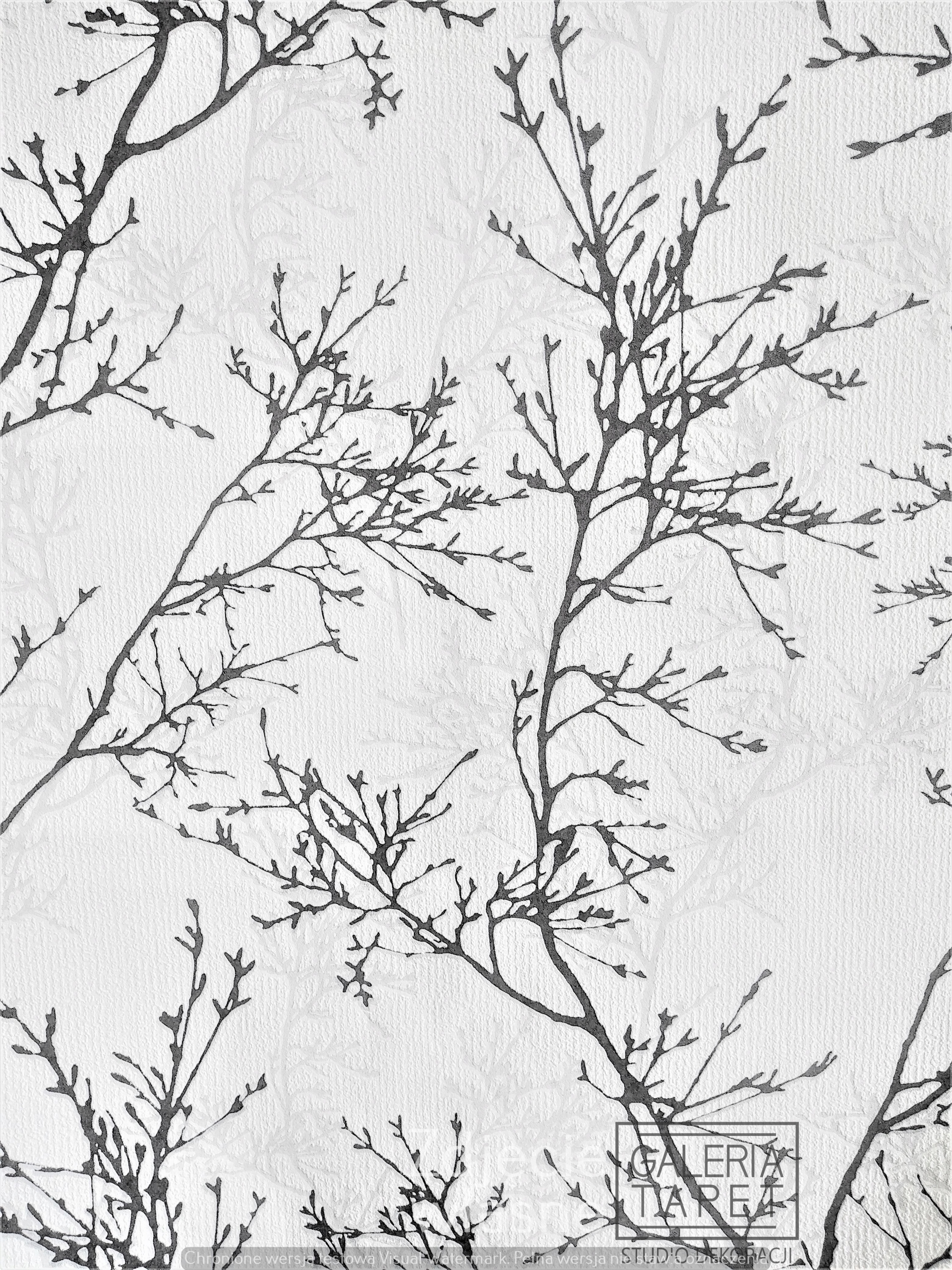 Флізелінові шпалери, гілки дерев, білий графіт