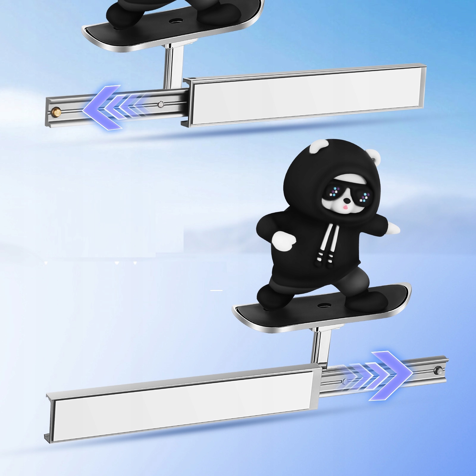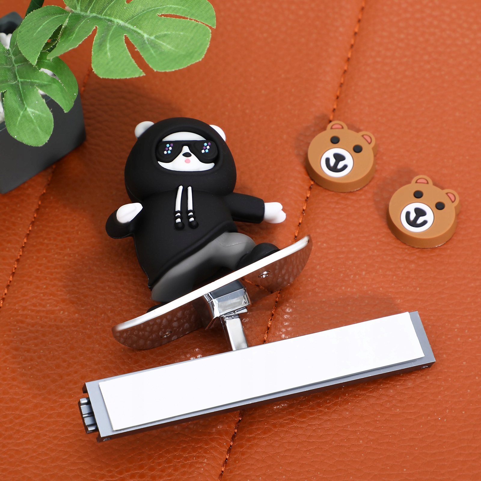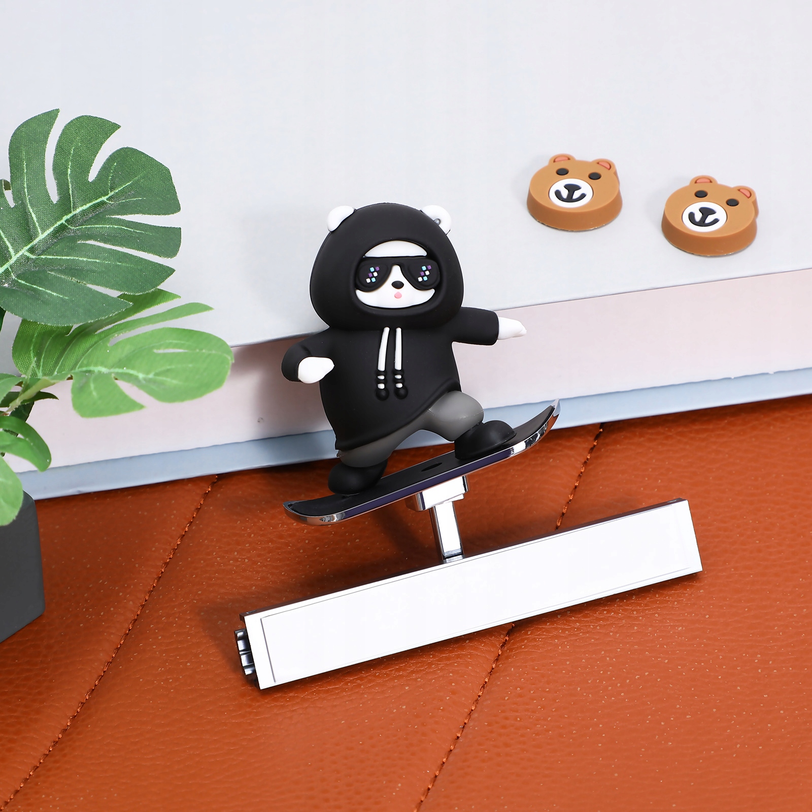 Добавьте веселья в интерьер вашего автомобиля с помощью этого плавающего украшения для скейтборда в виде медведя с экраном! Эта очаровательная фигурка медведя, предназначенная для установки на приборную панель вашего автомобиля, мягко покачивается при движении автомобиля, придавая вашей поездке движение и индивидуальность. Путешествуете ли вы в одиночку или дарите кому-нибудь подарок, этот маленький плюшевый мишка будет вызывать улыбку при каждом повороте руля.