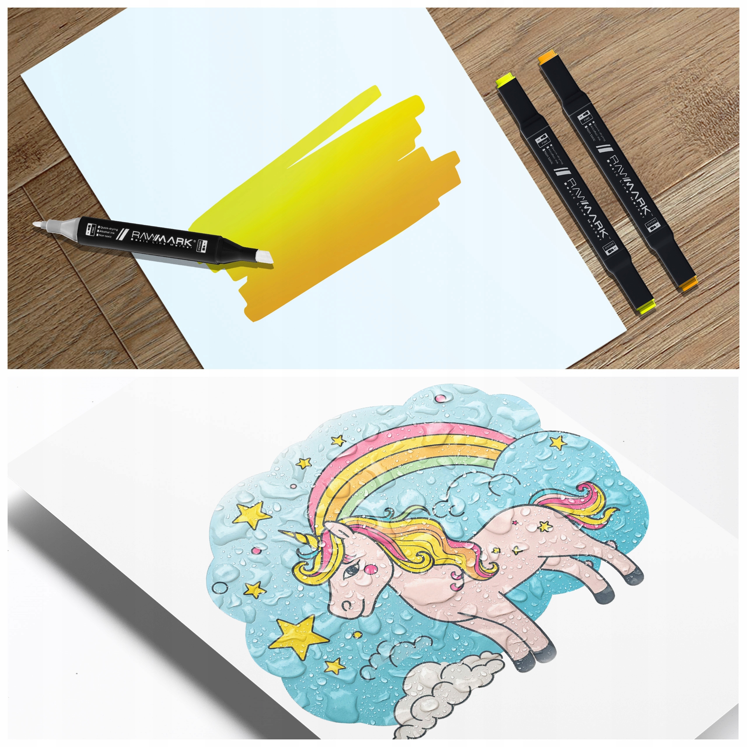 Чернила в маркерах обладают уникальными свойствами, которые делают цветаотлично смешиваются, а чернила также водостойкие! Благодаря этому вода не испортит вашу работу