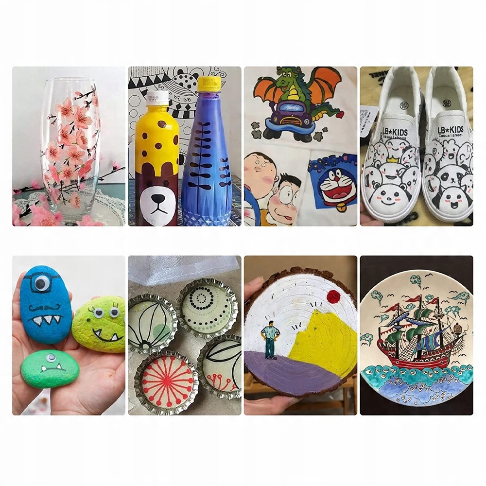 Для наскальной живописи, поделок, керамики, дерева, альбомов для вырезок, фотоальбомов, стекла, одежды, сумок и обуви , галька и так далее. Все, что вы можете себе представить, чтобы сделать вашу жизнь изобильной и красочной.