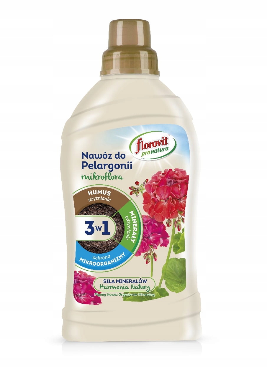 Естественные гуминовые вещества, содержащиеся в удобрениях, делают Florovit Pro Natura для герани, а его действие на растения и почва напоминает компост или навоз. Вещества Humus способствуют лучшему росту и развитию корней и эффективной воде и питательных веществам из почвы. Регулярное использование удобрений обеспечивается: интенсивный рост и окраска листьев и цветов, длинное и обильное цветение.