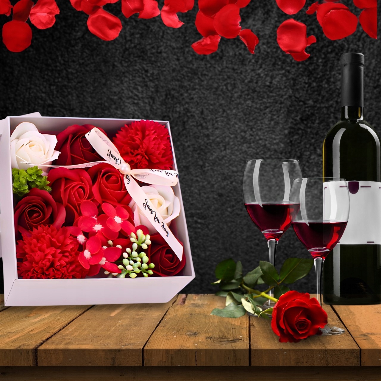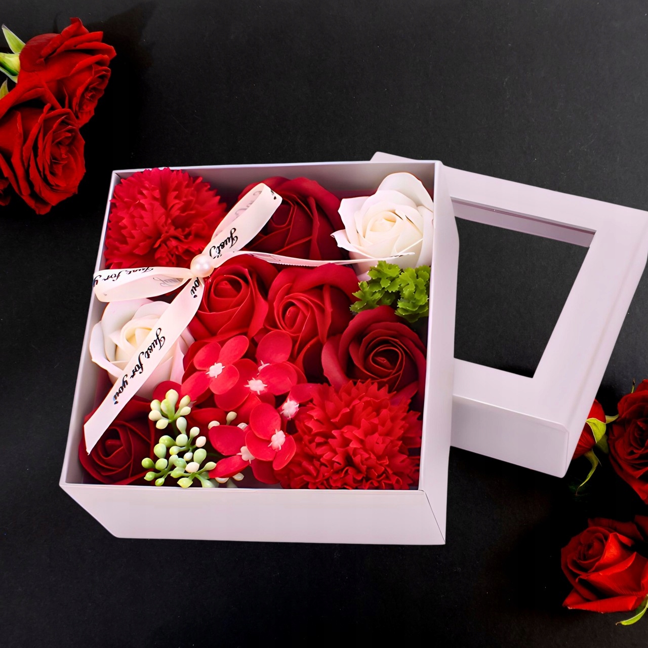 - Цветочная коробка с красными мыльными розами - идеальный подарок на День святого Валентина, Женский день, День матери, юбилей или день рождения. Элегантная упаковка делает подарок восхитительным на первый взгляд и не требует дополнительной упаковки.