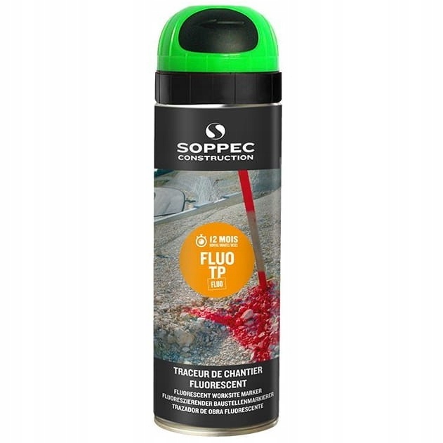 - Высокофлуоресцентная аэрозольная геодезическая краска Fluo TP компании Soppec для разметки на строительной площадке, срок службы до 12 месяцев.