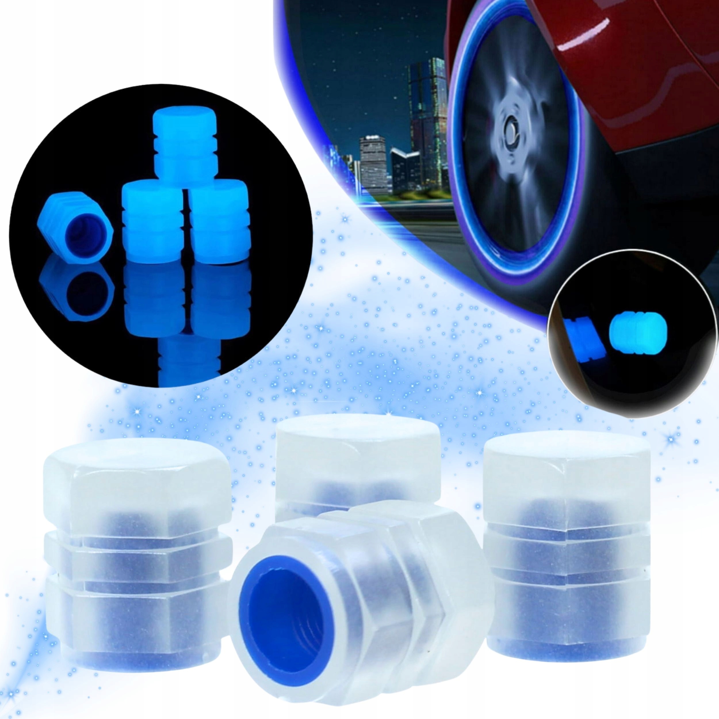 ✔️ 4 светящихся колпачка клапанов (цвет: белый днем, светящийся синим ночью)