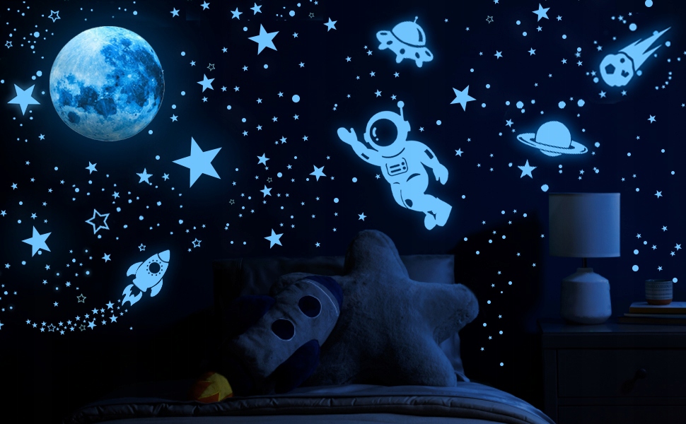 ⭐【Что вы получаете】:В одном наборе вы получите 526 предметов, включая 1 синюю светящуюся луну и набор светящихся звезд, точек, космонавтов и многого другого. Они добавляют вид настоящего ночного неба, в темноте комнаты превращаются в звездную, сияющую спальню, идеально подходящую для оформления детской комнаты.