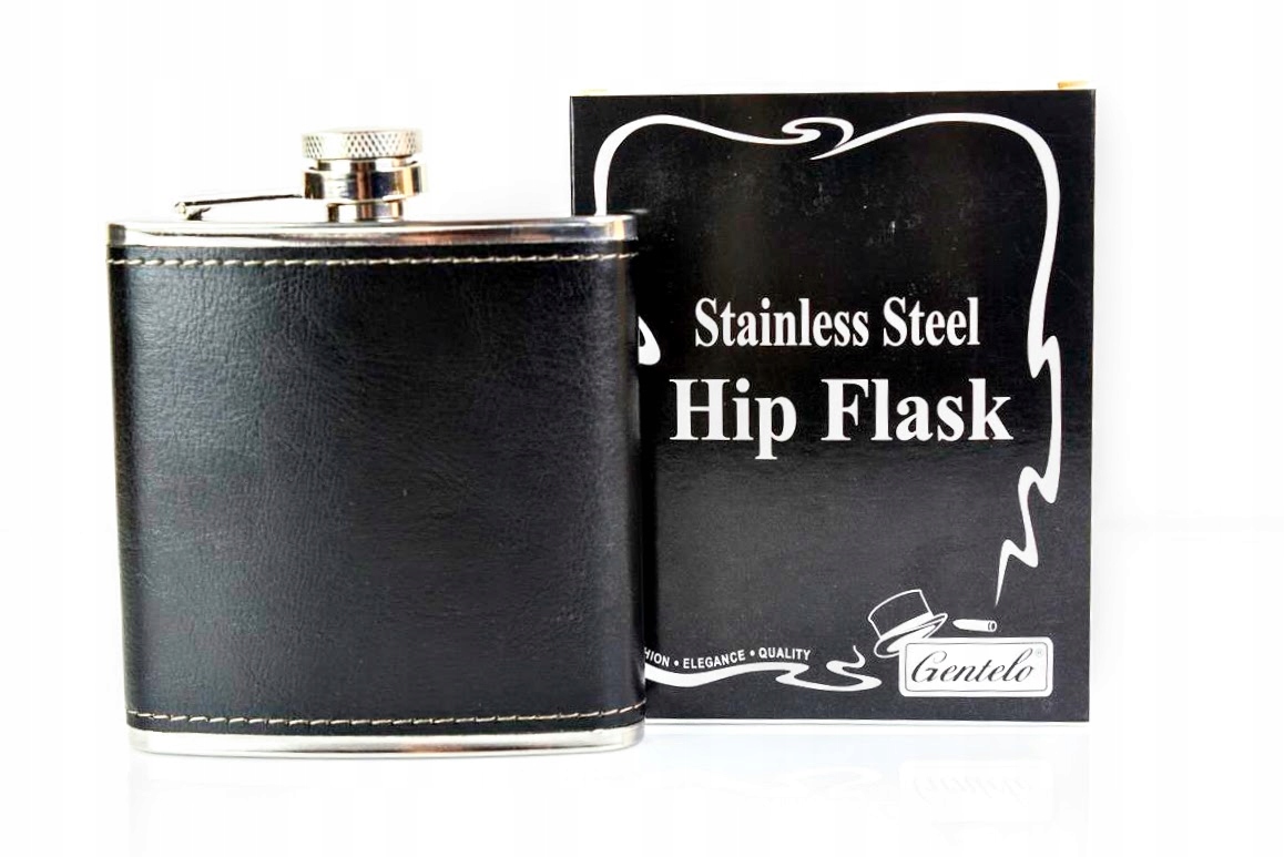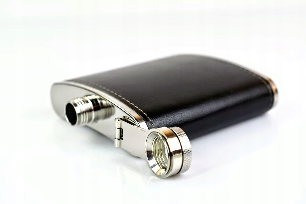 ✅ Фляга емкостью 6 унций - 2180 мл, изготовлена из нержавеющей стали, отделана черной кожей.