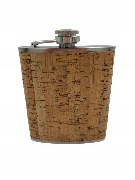 ✴️ Элегантная, прочная металлическая фляга, покрытая светло-коричневой пробкой.