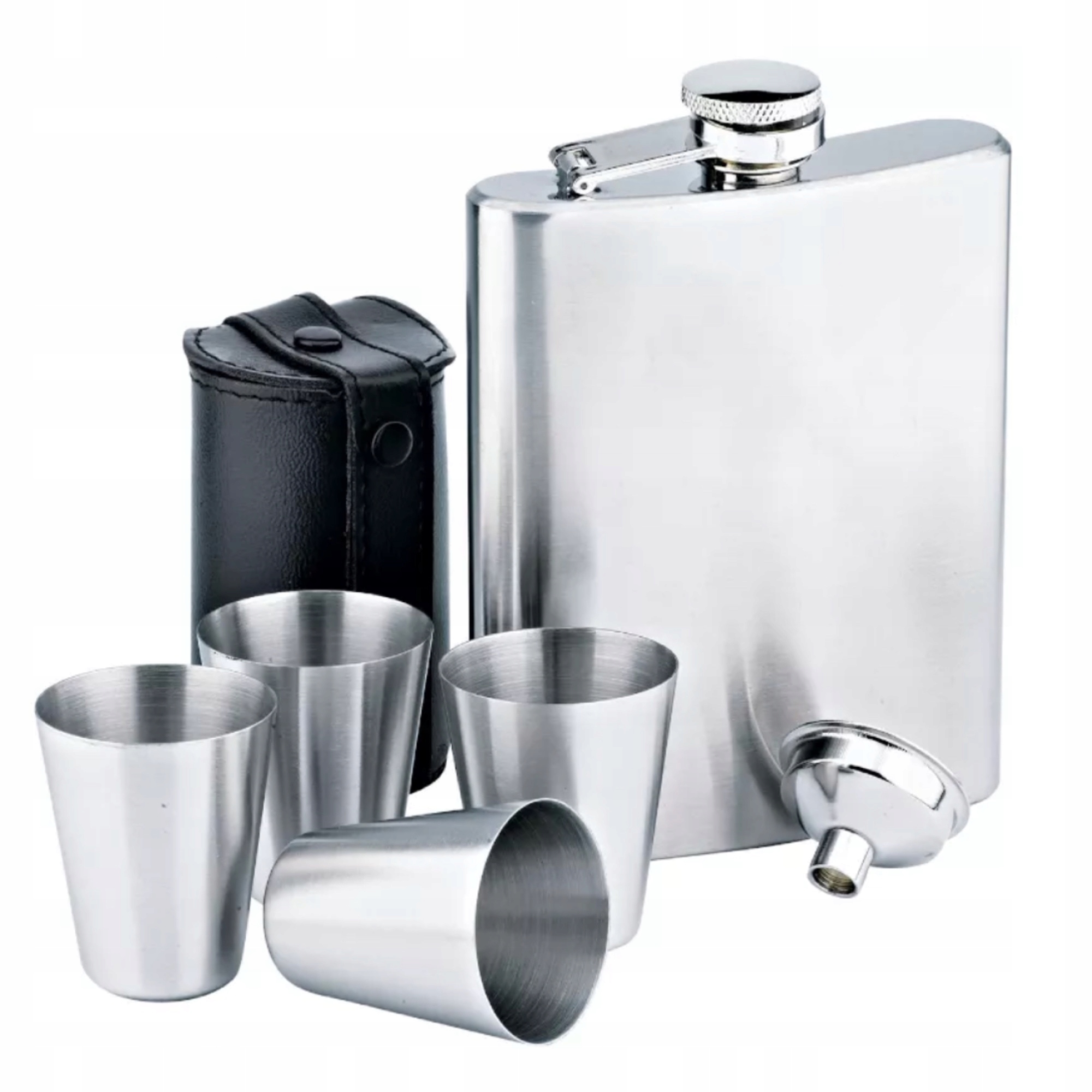 ФЛЯГА СТАЛЕВА З ТУРИСТИЧНИМИ СТАКАМИ ВЕЛИКИЙ СПИРТНИЙ НАБІР