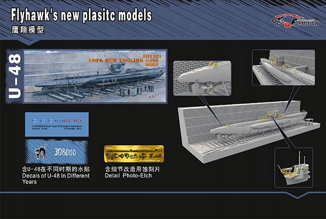 FLYHAWK 1101 - Подводная лодка масштаба 1:700 Тип VII B с доком