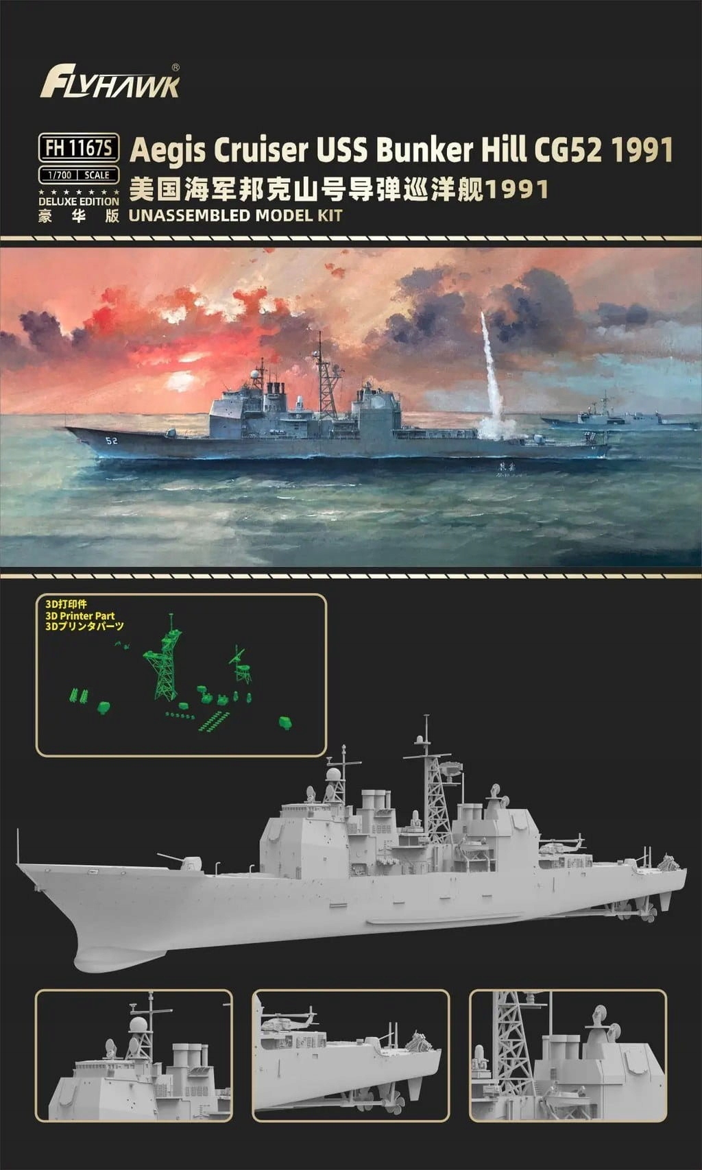 Flyhawk 1167S 1:700 Aegis Cruiser USS Bunker Hill CG52 1991