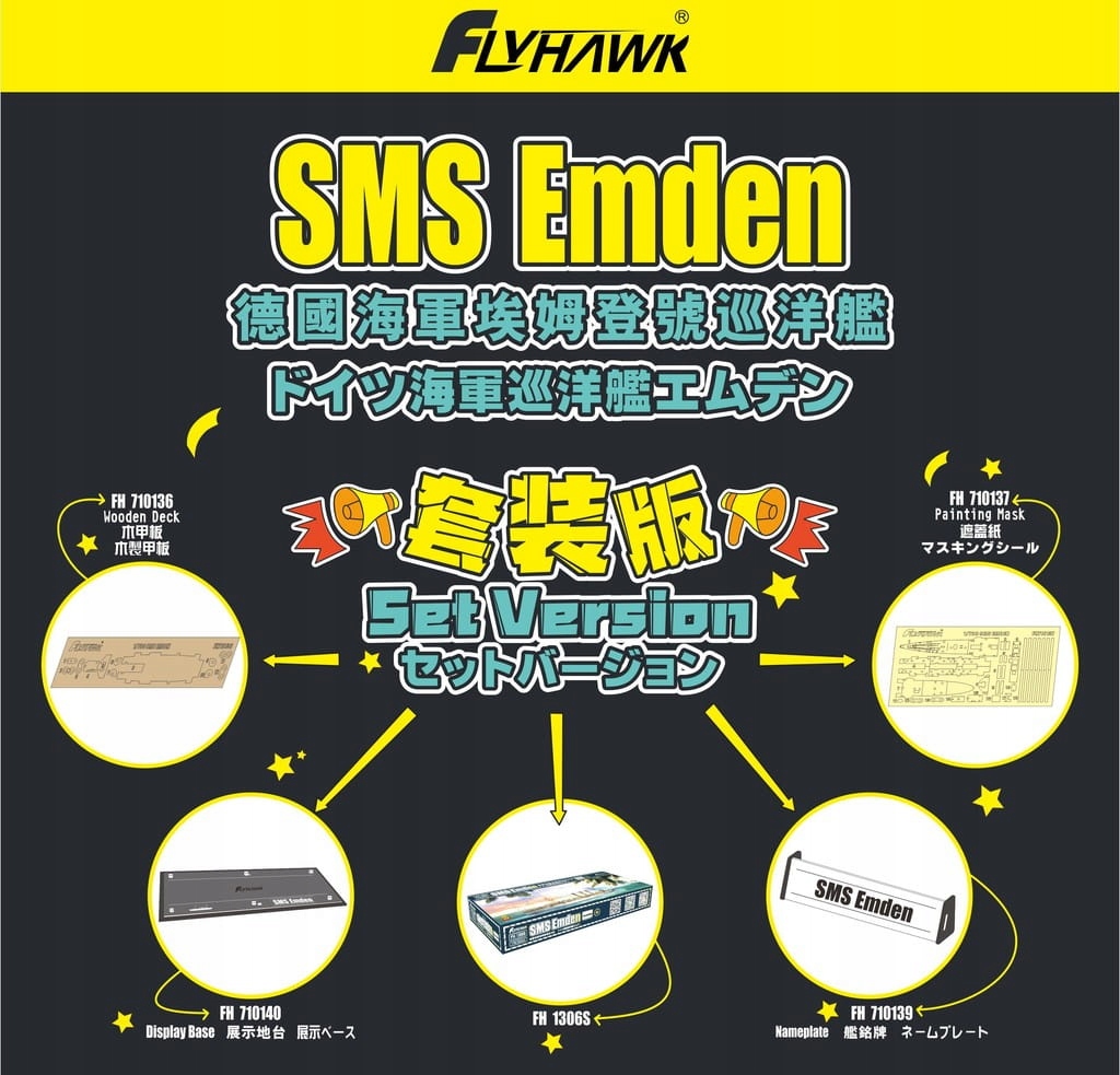 Flyhawk FH1306S-Set 1:700 SMS Emden Deluxe Set Ver.