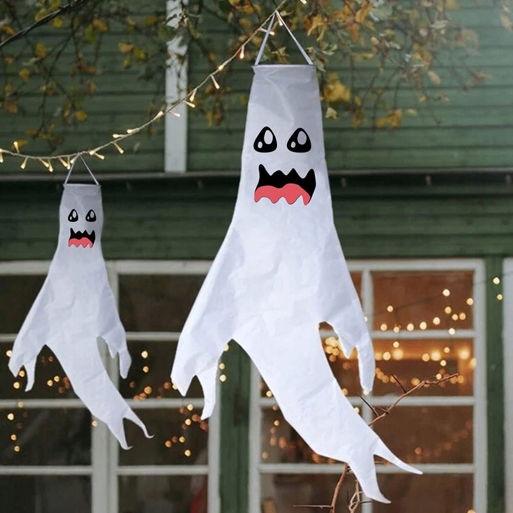 Изготовлено из высококачественной полиэфирной ткани, нашей Украшения Windsocks Ghost Ghost на Хэллоуин исключительно долговечны. Прочная, но легкая конструкция с прошитыми краями и встроенным обручем сверху сохраняет форму, что позволяет наслаждаться ею долгое время.